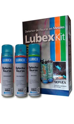 Desengrasante, Tinta Penetrante y Revelador. Detecta fisuras poco visibles en metales y soldaduras metálicas. Aplicables a Tuberías, uniones soldadas, matrices, piezas mecanizadas, etc. Se pueden comprar por separado.
