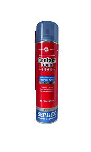 para uso en electrónica y electricidad (baja, media y alta tensión). Eficaz fórmula en aerosol para uso en electrónica, audio, computación, video, electrocontrol, electromedicina, mecanismos de precisión, etc.