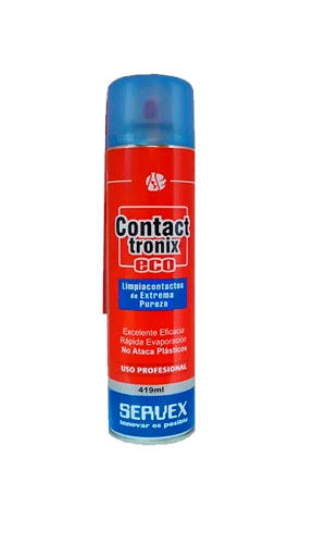 Limpia contactos eléctricos. Apto para uso en electrónica y electricidad (baja, media y alta tensión). Eficaz fórmula en aerosol para uso en electrónica, audio, computación, video,