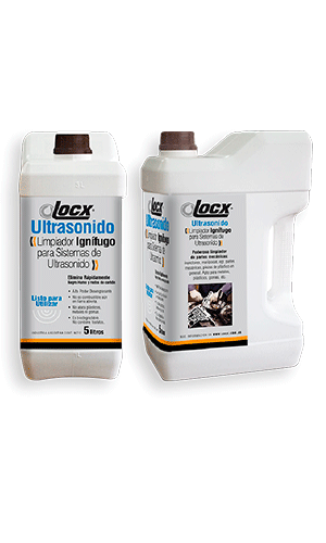 Limpiador hidrosoluble para Sistemas de Ultrasonido. Locx Ultrasonido es un limpiador de baja tensión superficial no inflamable diseñado especialmente para ser utilizado en dichos sistemas.